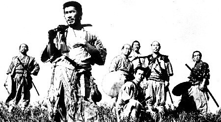 Dans Les Sept samouraïs, outre des ronins (samouraïs errants, sans maîtres) qui mettent le talent de leur fonction au service de paysans, ouverture sociale qui ouvrira la voie au film de sabre contestataire (Les Trois samouraïs hors la loi et Goyokin d'Hideo Gosha), Kurosawa montre un combat fratricide contre des semblables, d'autres ronins, pilleurs de villages, indignes des valeurs qu'ils sont supposés transmettre.
