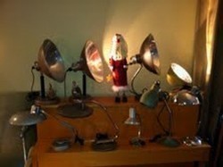 Clare Brennen : une passion pour les belle lampes anciennesLampes d'usines, de cinéma, de bureau, de médecins, de notaires, de barbiers... Modèles signés Philip Harris, Herbert Terry, Terence Conran, Pifco de Birmingham, Ferdinand Solere.