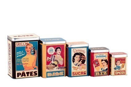 Les boîtes illustrées investissent nos cuisines. Inspiration fifties avec l'imagerie de la bonne ménagère des années 50 ou d'enfants joyeux, les boîtes affichent clairement leur inspiration nostalgique et drôle d'un temps révolu.