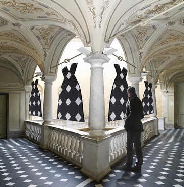 Une robe d'une longueur de 10 m sur 3 m de largeur, inspirée du style baroque, ornée de staff et moulures occupe la salle Carlone et la salle de la Donation Suzy Solidor quant à elle, accueille un tapis en forme de robe rendant hommage, avec humour, à cette icône de la mode qui piétinait les bonnes mœ,urs dans les années folles.
