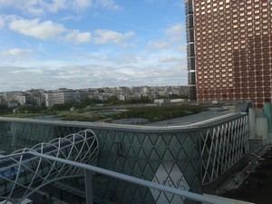 Direction la terrasse végétalisée qui surplombe l'autre côté de Beaugrenelle où se trouvent les restaurants avec vue sur la Seine et Marks & Spencer.