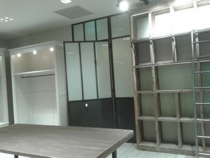 Nous montons au dernier niveau où la boutique Aigle bois et look industriel, déjà terminée mais encore vide, nous attend avec un cadeau très sympathique, les bottes anniversaire des 160 ans de la marque! Petit briefing dans les câbles et les plâtres par les dames de Guerlain qui mettent l'accent sur la future boutique maquillage, parfum, cosy et élégante. Nous descendons jusqu'à l'espace Darty presque fini où des cuisines flambant neuves sont présentées avec un chef qui prépare sur place des recettes.
