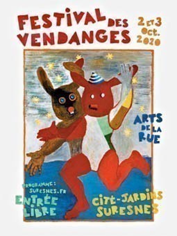 La ville des Suresnes a commandé à Nicolas Fédorenko une oeuvre pour exprimer toute la gaieté du festival des vendanges des 2 et 3 Octobre, puis la décliner sur tous ses supports de communication.