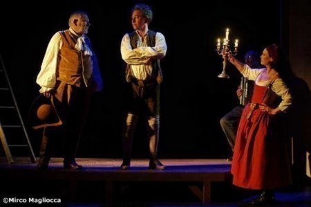 Le théâtre offre alors un formidable terrain de mise en abîme pour donner vie, sous les yeux des spectateurs (de la salle mais aussi de la scène), à ces récits de bord de route, grotesques, touchants, terribles et drôles à la fois. La scène s'anime, des personnages rentrent et sortent et on plonge soudain dans l'intimité de Jacques ou de son maître. Une échelle, un rideau censé dissimuler une grange, quelques caissons de bois où reposent des verres de vin, il en faut peu pour donner vie au récit et laisser l'histoire suivre son cours. Cette économie dans la mise en scène, qui repose davantage sur le jeu des acteurs, tous très bons, qui passent d'un rôle à l'autre en un rien de temps, et sur le rythme du récit, permet de revenir à l'essence même du roman comme du théâtre : savoir raconter une histoire.