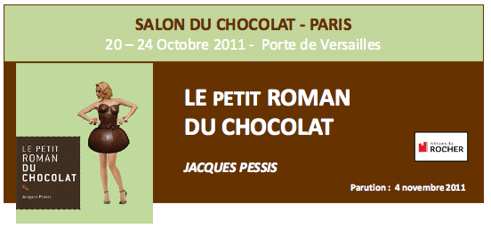 Le Salon du chocolat qui se tient du 20 au 24 octobre 2011 à la Porte de Versailles, est l'occasion de parler du livre de Jacques Pessis, 'Le petit roman du chocolat', à paraître aux Editions du Rocher. Cet ouvrage est le témoignage personnel et subjectif d'un goûteur de