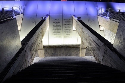 Empruntant un vaste escalier à ciel ouvert le visiteur descend dans un passage souterrain où il est plongé dans une ambiance qui évoque les cales d'un navire, avec une sélection de textes d'écrivains et de politiques qui rappellent les luttes des esclaves sur tous les continents pour leur libération : Aimé Césaire, Toni Morrison, Martin Luther King ou Olympe de Gouges...