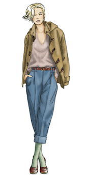 En vedette, des produits essentiels mais relookés : le duffle-coat en version raccourci, en laine feutrée, à associer avec un pantalon masculin « oversized », porté roulé.