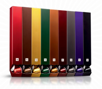 Nespresso a créé un étui à capsules en aluminium. Pixie Sleeve Basic permet de glisser dans 4 distributeurs monochromes ses 4 étuis de Grands Crus préférés.