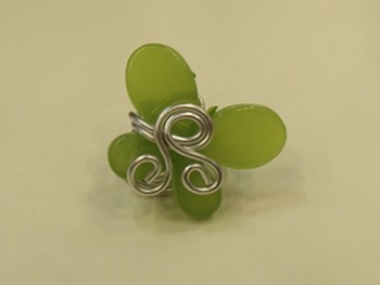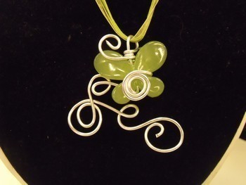 Pendentif réalisé à l'atelier 'création de bijoux'Les participants se retrouvent alors autour d'une table avec l'animateur et s'initient, pendant 15 à 30 minutes suivant les ateliers, à la peinture sur verre, à la fabrication de bijoux ou à la couture.