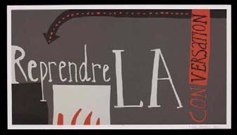 Outre une prédilection pour l'édition sous toutes ses formes - estampes, cartes postales, livres, affiches, tracts...—, l'artiste affirme un goût prononcé pour la formule à décrypter (« Devenir grain de sable »), ou pour la citation pastichée (« La pauvreté est une idée neuve en