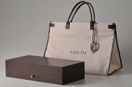 en lettres d'or complètent ce luxueux coffret de chocolats Aquim (création Samantha Aquim, design Oscar Niemeyer).