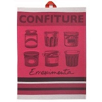 Connue des Basques bien sûr mais aussi de tous les gourmets, la confiture de cerise qui accompagne l'Ossau Iraty est emblématique de cette région-là. C'est pourquoi la maison Jean Vier, spécialiste du linge basque de table et de toilette, a choisi des pots à l'ancienne de confiture comme motifs de ses torchons et essuie-mains (13, 90 et 9 €, www.jean-vier.com)
