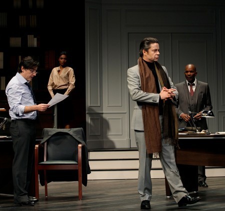 Dans une mise en scène classique où le décor restitue l'intérieur chic et cosy du cabinet, la pièce brille surtout par son texte. Les mots de David Mamet sont mis en valeur par la traduction fine de Pierre Laville et l'interprétation d'Yvan Attal, qui campe un avocat plus vrai que nature.