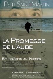 Bruno Abraham-Krémer et Corine Juresco adaptent La Promesse de l'Aube au Petit Saint-Martin, nouvellement racheté par Jean-Claude Camus (Théâtre Saint Martin et La Madeleine). La mise en scène sobre laisse toute sa place aux mots de Gary portés magistralement par Bruno Abraham-Krémer. On est conquis.