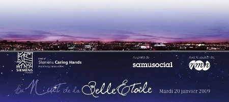 La troisième « Nuit de la Belle Etoile », une soirée caritative en faveur du Samu social, aura lieu mardi 20 janvier 2009. Elle est organisée par la Fondation Siemens France avec le soutien de la Réunion des musées nationaux. Cette soirée réunira quelque 300 dirigeants d'entreprise autour du Samusocial et de son Président-Fondateur, le Docteur Xavier Emmanuelli.