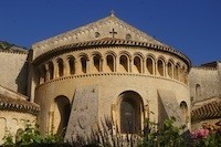 Au pied de superbes roches, le village traversé par un ruisseau est resté tel qu'il devait l'être pour les premiers pèlerins sur la route de St Jacques de Compostelle, puisque St Guilhem était une étape de cette longue route. Les maisons s'imbriquent les unes dans les autres, un chat dort sur un balconnet, on entend couler tranquillement la rivière du Verdus, sur le peu de parcelles accrochées aux flancs montagneux, quelques arpents de jardins sont cultivés pour des tomates ou des courges : la vie s'écoule paisiblement seulement troubler aux beaux jours par les innombrables touristes venus admirer le village préservé dans toute son entité architecturale. Comme les marchands du temple, seuls quelques artistes éparpillent leurs marchandises sur le trottoir. Leurs œ,uvres ne sont pas toujours artisanales et quand la provenance est chinoise et parfois kitchissime, le contraste avec la ruralité environnante et l'ancienneté médiévale des constructions est d'autant plus fort. Mais il faut oublier ces désagréments liés au tourisme et se concentrer sur la beauté de la place du village et de son platane plus que centenaire. La place met en valeur l'abbaye de Gellone du XI ème siècle qui recèle plusieurs trésors : sa crypte pré-romane, son cloître dont il ne reste que quelques éléments, sa relique d'un fragment du bois de le croix du Christ, son autel roman du 12 ème, ses orgues du 18 ème siècle miraculeusement conservés sur leur lieu d'origine.....L'abbaye de Gellone et ses dépendances est un fort beau témoignage de l'art roman languedocien.