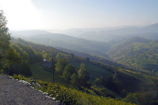 I followed it and finally came to a little town after another 10 km. There was a tiny restaurant where I had breakfast, served by a little girl with huge chocolate eyes. After breakfast, I admired a scallop shell on the mantel, and the woman who ran the restaurant pressed it into my hands saying it was for me, la peregrina. (I can get rid of things, but what about gifts?)