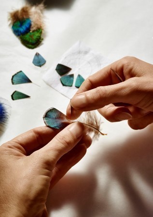 Elle fera de la plumasserie son métier, et elle raconte comment les plumes étaient alors considérées comme un bijou, que l’on recevait en héritage et que l’on transmettait. Seuls les aristocrates et les gens fortunés pouvaient se les offrir. Les Maharajahs portaient des diamants énormes avec des aigrettes par exemple. Certaines plumes venaient de très loin, elles étaient rares et très coûteuses. Aujourd’hui encore, on travaille avec ces plumes anciennes, étonnement conservées. C’est le cas de la plupart de celles qu’elle a utilisées pour Piaget.