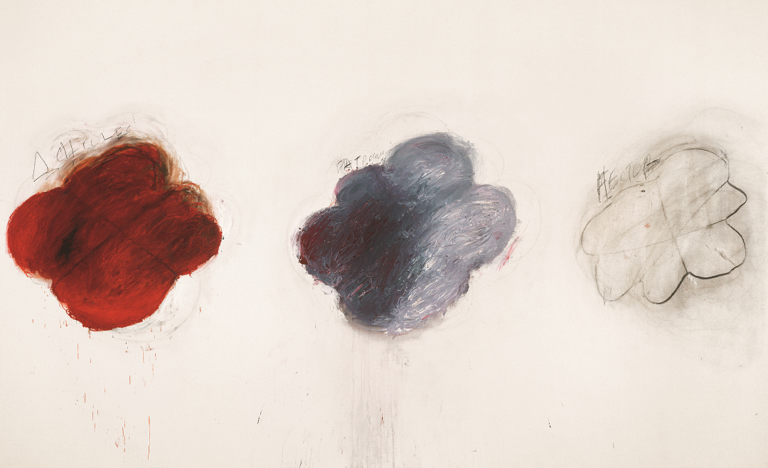 The Vengeance of Achilles, 1962 Oil, lead pencil on canvas 300 x 175 cm Kunsthaus Zürich, Zurich © Cy Twombly Foundation, courtesy Kunsthaus Zürich, Zürich