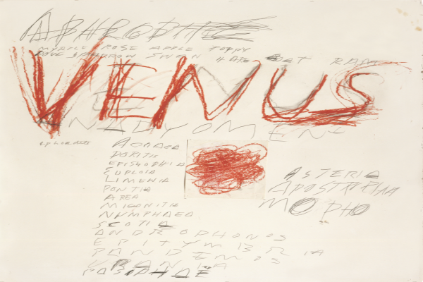 Venus, 1975 Oil Pastel, lead pencil and collage on paper 150 x 137 cm Cy Twombly Foundation © Cy Twombly Foundation, courtesy Archives Nicola Del Roscio