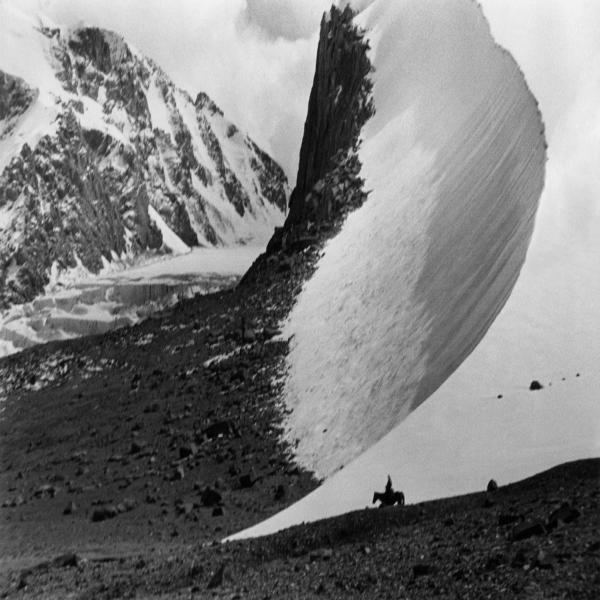 Ella Maillart (1903-1997) Descente du col de Djengart à la frontière de la Chine. Kirghisie Tirage argentique, 26 x 39 cm Lausanne, Musée de l’Elysée
