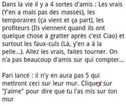 Ah Facebook ! Que ferais-je sans tes fausses informations diffusées et rediffusées d’autant plus qu’elles sont énormes. Tenez ces jours-ci, combien de fois avez-vous reçu –et peut-être retransmis- cette information délirante : « C'est maintenant officiel ! C'est paru dans les médias. Facebook vient de sortir son prix d'entrée: 5,99€ pour garder l'abonnement gold de votre vie "privée". Si vous collez ce message sur votre page, il sera offert gratuitement (j'ai dit coller pas partager) sinon demain toutes vos publications peuvent devenir publiques. Même les messages qui ont été supprimés ou les photos non autorisées. Après tout, cela ne coûte rien pour un simple copier-coller. ». A quoi un autre « ami » FB a répondu ceci, non sans humour :